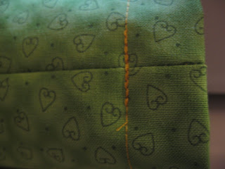 11. Do the same another 3/4 to an inch below that, to make the channel for the cord - making sure the channel is wide enough for your piece of ribbon or cord. Reinforcing at the seams.